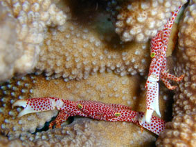 ![]() 『珊瑚に隠れたアカホシサンゴガニ』 |