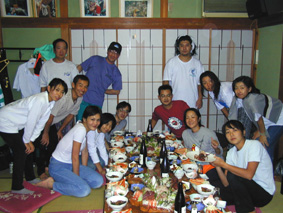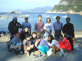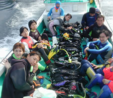 田子漁港前では、田子の『産業祭り』が開催されており、にぎあっていました。 ダイビングの休憩中には、無料の伊勢エビのみそ汁を頂戴し、身体が温まりました。 2本目は、『はえあわせの根』でダイビング!こちらも透明度は12mくらいです。 根と根を渡るゆったりとしたダイビングでした。アオリイカの群れ、キンギョハナダイ、 テンジュクダイやネンブツダイの群れが綺麗でした。 12時には、ダイビングを終え、後かたづけの後、いつもの三共食堂『小鰺寿司』 で、昼食をとりました。2階の広間でフォルモサの貸し切りです。 2日間のロギングをしながら昼食を楽しみました。 ![]() 『三共食堂2階にて』 東京のショップには、7時過ぎに戻り、ツアーで撮影したビデオやデジカメの 映像・写真を鑑賞し、9時頃から六本木の居酒屋『焼き三昧』で打ち上げでした。 最後まで宴会好きなツアー参加者たちでした。 |