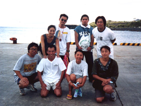 見送りの秋冨さん、差し入れありがとうございました。送迎&留守番の舞ちゃん、ありがとう。 昨日、少し元気が無いように見えたのは気のせい? …やっぱり、、、、だよね〜 えっへん、取り急ぎ簡単に? 報告を。 18日早朝、三宅島到着後、飯もそこそこにイルカに遊んでもらうため御蔵島へ。 漁船で走ること1時間弱(かなり速いらしい。) 現地に着くころには、気持ちワクワク! 気分はゲロゲロ…(1部の人。) 島を半周ほど回ったところでイルカ発見!!!! イルカの状態を見ながら群れの前方に、操船する船頭さん。しばらくすると… 「何やってんだー!、速くいけー!!」の号令にも似た合図のもと、いざ海へーーーーー! 目の前でイルカ達は、くるくる回ったり白いおなかをみせて泳ぎ、近付いて来てくれました。 我らがフォルモサチームも負けじと泳ぎまくり!!! 松とーちゃんは、かとちゃんの尻をビデオに収めようと追っかけるし、えっ? イルカを追いかけてた? く、詳しくはビデオをごらんください。 合計、5つの群れと戯れ…? …いや〜〜〜、楽しかった。言葉にするのが難しいくらい、感動です! 全員が「また、来たーい!!!」と言い残し、島を後にしました、とさ。 (船酔いで海に入る事ができなっかった皆さん、申し訳ない。) 天候:晴れ時々小雨 気温:あじ〜!? 水温:27〜28度 波・風有り 5mmウエット(かとちゃん、途中から水着) スキン・ダイビング まずは、イルカのみの報告でした。 |