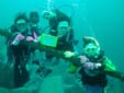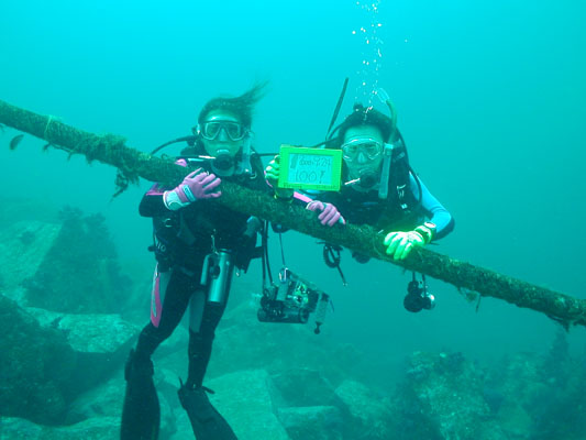【参加者】 <SP> 曽我部君 <ファンダイビング> 新井さん、鈴木(進)さん、丸山さん <スタッフ> 細川、松橋 の総勢6名 雨もあがり海上は穏やかでした。 波、うねり、風もなく、Goodのコンデションです。 進ちゃん先生ダイバーの1人目にして100本目を迎え、海中での記念撮影と マリーナダイバーズクラブでの昼食時、お祝いをしました。 水温は24度、透明度15〜18m、見れたお魚は、 カンパチ、ネンブツダイの群れ、カゴカキダイ、ハタンポの群れなどで 奇麗で楽しいダイビングツアーでした! 進ちゃん先生!100本記念、おめでとうございます! |