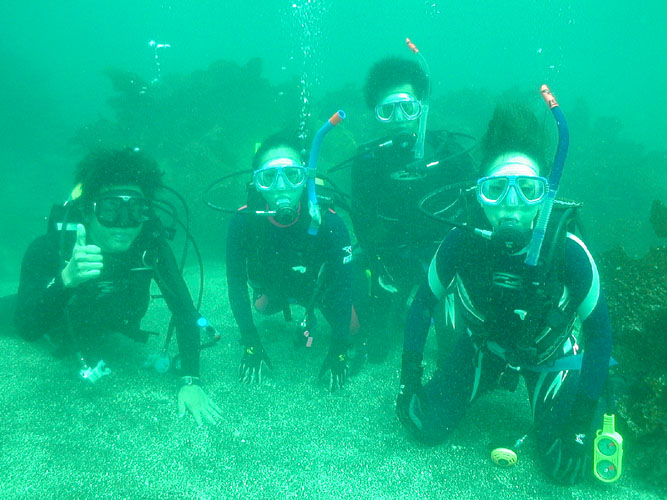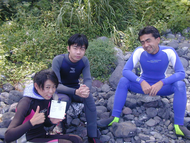 今回の富戸ツアーは、SD海洋講習で参加の、橋本さん、飯田さん、木内さん、 荻野さん、石井さんの5名様と、AD講習で参加の曽我部さん、 そしてスタッフ細川インストラクターと松橋インストラクターの総勢8名です。 天候は晴れ、『ヨコバマ』と『脇浜』の水温は24〜25度、透明度8〜12mでした。 各講習に参加した皆さんは、海で落ち着いてダイビングスキルをこなし 海中の散歩を楽しみました! ダイビングを終えた後、昼食はいつもの伊東『ふじいち』で焼き魚三昧でした! イカの丸焼き、とっても美味しかったな〜!! 今日も楽しいダイビングツアー(講習)でした。 |
