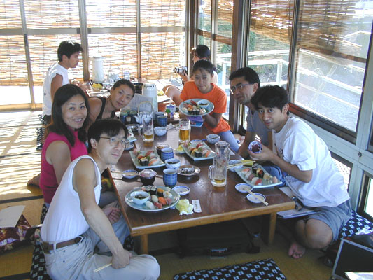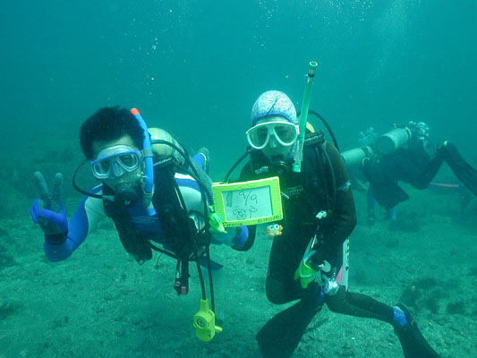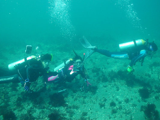 【参加者】 進ちゃん先生、美保ちゃん、ぴえさん(AD)、丸ちゃん(AD)、荻野さん(SD)、 スタッフは、細川インストラクターと松橋インストラクターです。 【ダイビングレポート】 天気予報では、前線の影響でお天気が崩れるとのことでしたが、 気温30度、晴れのいいお天気でした。 1本目は『ヨコバマ』、2本目は『脇ノ浜』でしたが、いずれも水温24度、 透明度は8〜12mくらいと良好です。 ダイビングを終えた後は、遅めのお昼を川奈の『海女の小屋』でいただきました。 メニューはお寿司です! 美味しかったな〜!! |