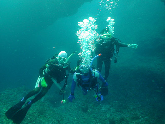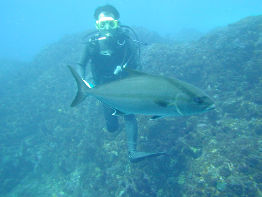 9月15日『敬老の日』を含めた連休を利用した八丈島ツアーでした! 参加者は、森廣さん、荻野さん、細川、松橋の総勢4名という寂しい人数ですが、 思いっ切り八丈島の海を楽しむことが出来ました。 宿泊でお世話になったのは、八丈島リゾート・シーピロス(ホテル)です。 八丈島リゾート・シーピロスのお問い合せはこちらです! 【到着15日の一日目は】 『ナズマド』:水温20〜24度、透明度30m とってもきれいでしたが、強い流れがありました。 『八重根』:水温26〜27度、透明度20〜25m 大きなアーチの前でカメとカンパチが遊んでくれました。 『底土港』:水温27度、透明度15〜20m 三つ又アーチをゆっくり回ってきましたが、ダイバーだらけです。 お昼は、『みつ橋』の島寿司をいただきました! 相変わらず、美味しいですね! 【二日目は】 『ナズマド』:水温26度、透明度30m 早朝ダイブですが、定番のカメが見れました。 『乙千代ヶ浜左ドロップ』:水温24〜26度、透明度25〜30m ドロップを落ちる快感は忘れられません! 『乙千代ヶ浜右アーチ』:水温26度、透明度20〜25m 台風の影響はありましたが以外と海中は静かでした! 『ナズマド』:水温18〜21度、透明度30〜40m 透明度は抜群ですが、水が冷た〜い! お昼は、『一休庵』のあしたばのうどんや蕎麦をいただきました! こちらも、美味しいですね! 台風17号の影響で、17日予定の東海汽船は欠航と決まり、 17日の戻りは一旦あきらめ夕食を八丈島リゾート・シーピロス経営の 焼き肉屋さん『和牛』で岩手の和牛焼き肉を楽しみました! 17日は、台風17号の伊豆諸島の直撃は避けられ、航空便の運行が決まり、 フォルモサチームは運良く2便で帰ることができました。 予定のダイビングを終え、船便より早く帰れたラッキーなツアーでした! 航空便の手配をしてくれたシーピロスの鈴木さん!ありがとうございます。 今回のツアー参加者は、おこないが良いのでしょうか? !(*^_^*) |