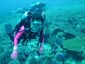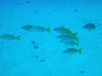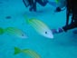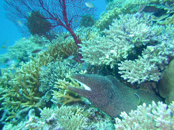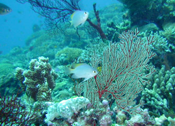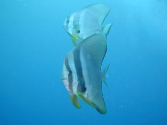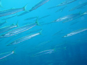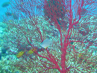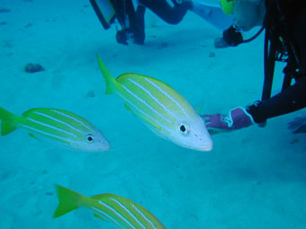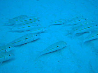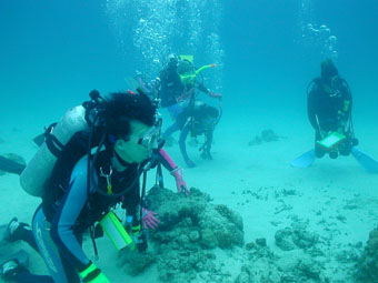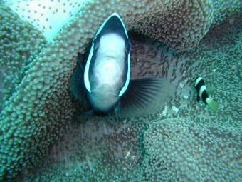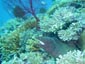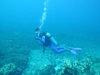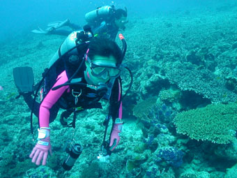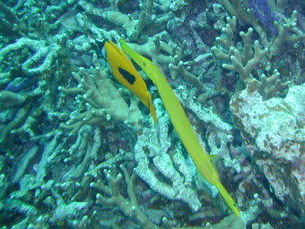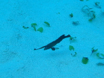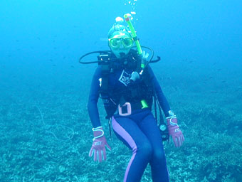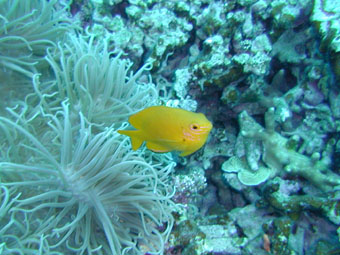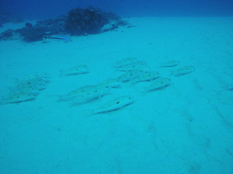 【参加者】 進ちゃん先生こと鈴木さん、丸山さん、荻野さんに新井さん、 そして同行スタッフは松橋の総勢5名です。 【ダイビングログ】 ケラマ阿嘉島に滞在中は、良いお天気に恵まれ、ほとんど風もなく、 気温は21〜27度くらいの暖かい陽気でした。 ほとんどのダイビングポイントで水温24〜25度、透明度は15〜35m とかなり良いコンデションです。 『渡嘉敷島うみんちゅう』 海底の白い砂がまぶしいくらい明るく、とても奇麗でした。 テンス、ミナミホタテウミヘビ、ナッタイミノカサゴ、ハナミノカサゴ、 ヒメオニオコゼ、ハダカハオコゼなどを観察。 『嘉比ブツブツサンゴ』 イソバナが多く、キンギョハナダイが群れて奇麗でした。 ブツブツサンゴの周りにはハナゴイなどが群れていました。 『安室島魚礁』 エダサンゴ畑の魚礁の中には大きなアカククリ、中層にはツバメウオの 群が優雅に漂っていました。たくさんのチョウチョウウオと台湾カマスの 群れが圧巻でした。 『久場島西』 トップが水深4mくらいからすそ野が水深50mの隠れ根の周りをダイビング。 キンギョハナダイ、スミレナガハナダイ、そして目当ては、 話題のピグミ−シーホースが見れました。上の写真で6行B列をご覧下さい。 どこにいるかわかったらすごいです! 『佐久原の鼻』 ウミウチワ、イソバナの多いポイントです。ガラスハゼ、イシガキリュウグウウミウシ、 アカホシカクレエビ、アカホシサンゴガニなど可愛い生物がたくさんでした。 『渡嘉敷島アリガー』 白い砂地に根が点在するポイントで、ガーデンイール、ヒメジの編隊や 人なつこいヨスジフエダイ、ロボコンことコシオリエビ(8行B列)、ハナビラウツボ、 スカシテンジクダイ、グルクンの群れなどたくさんの種類のお魚を観察しました。 今回宿泊でお世話になったのは、民宿『アーマンハウス』さんで、 お部屋も奇麗、お食事も美味しく快適でした。 久振りの沖縄ケラマツアーでしたが、参加者全員が楽しめたツアーだった と思います。泡盛が美味しかった! |
