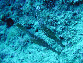 毎年恒例の年末年始ツアーでしたが、今回は6泊7日のY2K避難ツアーでした。 年越し前は、曇りがちなお天気で気温も低く感じられましたが、6日間のダイビング を通して水温24度、透明度15〜35mの素晴らしく良いコンデションでした。 ダイビングのポイントは、 1日目:L字ア−チからWアーチ、下地島西ドロップ 2日目:魔王の宮殿、竜馬ドロップ 3日目:下地島本ドロップ、ミニグロット 4日目:ババの家、クロスホール 5日目:宮古島イニギャー、牛さんこわいよ〜 6日目:一ノ瀬ドロップ、魔王の宮殿 竜馬ドロップではカミソリウオのペアと大きなオニダルマオコゼ、 本ドロップではロウニンアジとクダゴンベ、ババの家では大きなアカククリのペア、 白鳥の帰り道水面でマンタと遭遇(スキンダイビング)、 魔王の宮殿近くの水面で再びマンタと遭遇(スキンダイビング)、そして 水中では、マンタ数匹とイソマグロ2匹が遊んでくれました。 いつもながらの楽しい年末年始ツアーでした! |
