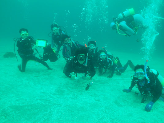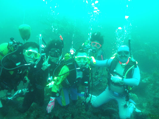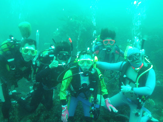 1日目の土曜日は、大川温泉で日中ダイビングとナイトダイビングを 行い富戸リゾートに宿泊し、2日目の日曜日は、伊豆海洋公園で ダイビングを楽しみました。 【参加者】 『9月2日(土曜日)大川温泉ツアー』 ★2ボートダイビング:曽我部君AD、ゆかたんDM、森廣さんDM、秋冨君 ★SD海洋実習1日目:島田さん、金子さん、 ★ナイトダイビング:曽我部君、ゆかたんDM、森廣さんDM、秋冨君 『9月3日(日曜日)伊豆海洋公園ツアー』 ★ビーチダイビング:曽我部君AD、ゆかたんDM、森廣さんDM、秋冨君 進ちゃん先生(現地集合)、飯田さん(現地集合)、 木内君(現地集合)、永友さん(現地集合) ★SD海洋実習2日目:島田さん、金子さん、丸山さん(現地集合)、 石井さん(現地集合)、永友奥様(現地集合) 【ゆかたんのツアーレポート】 今週末ツアーにご参加の皆さん、お疲れ様でした! 金子さん、島田さん、丸山さん、永友さん(奥様)、石井さん SD合格おめでとうございます これで、晴れてダイバーの仲間入りですね 次回はご一緒に潜れるのをとっても楽しみにしています さて、さて、いつもとびっきり楽しい、フォルモサのお泊まりツアー 報告をさせていただきます 第1日目、首都高速の突然の事故閉鎖で、目的地の大川には ちょっと、遅れて、10時頃到着 一本目 ボートダイビング No.4.〜No.3 アジの大群や、それを狙って、ヒラマサが登場!の予定が お昼寝中の大きな、トビエイ発見! じっくり、まったり、皆で鑑賞出来ました 戻って、興奮気味にスタッフに話すと、 「No.5やNo.6にはもっと沢山いますよ」とあっさり言われてしまいました これは、行かないわけにはいかない?! お昼は、マリンゾロお手製のサザエの炊き込み御飯で、満足、満足 さて、お腹も一杯になったことだし、気合を入れて、2本目も頑張ろー そしたら、スタッフの方が言っていた通り、トビエイが出るわ、出るわ もう最後の方は、また〜って感じで、有り難味がほとんどなくなって いました (まったく、贅沢な話ですね〜) ナイトダイビングは、心臓が飛び出そうなくらい、ドキドキのそがっち も、思わず、「最高ー!」と叫ぶほど、スッごく良かったですよ まずは、砂地をシャカシャカと軽快に夜の散歩を楽しむ、イセエビが もう、あっちこっちに・・・ ついでに、サカタサメ、シビレエイ、体当たりする迷惑なカワハギに カスザメと15cmほどの、子猫ザメはほんと、可愛かったですね〜 浮上すると、満天の星空・・・ あなどれないぞ、大川温泉! とにかく、お腹もペコペコ、喉もカラカラで富戸リゾート海太郎に一直線! 2日目は、当日参加の皆さんとIOPで合流の後、まずは一本 前情報では、かなりいろいろ出モノがありそうだったのですが、なにせ えらい人、人、人・・・ 美味しいそうな、アジのタタキ定食、じゃなかった、群れはきれいでした 砂地に隠れていた、ヒラメをとうちゃんがするどく発見 みんなで取り囲んで、じっくりこれまた観察 2本目は、1の根目指して、のんびりダイビング・・・ 砂地に降りると、いきなり水温18度で、ちょっと厳しい、でもその分 抜けいていて、ちょっと良かったですね ついでに、皆で記念写真をパチリ! 一部の人がカミソリウオを見られたようでしたが・・・ これから、秋になって、どんどん海の状態も良くなるので、是非皆さん 海に行きませんか? 特に、お泊りツアーは、かなりお得気分間違いなしですよ |