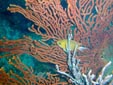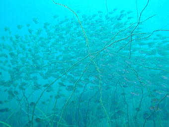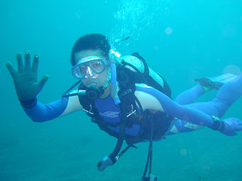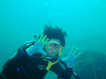 【参加者】 SD講習で倉本さん、ファンダイビングはクワタン、ユカタン、荻野さん、 スタッフは、細川インストラクターと松橋インストラクターの総勢6名です。 【クワタンのダイビングレポート】 大瀬崎、行ってきました! あいにくのお天気でしたが、片付けが済むまでは 雨もふらずになんとかかんとか。 でも、海から上がるとさすがにさぶいです。 No.1 柵下 曇り 波・うねり・流れともナシ 透明度20m 透視度15〜18m 水温22度 最大深度30m 潜水時間35分 波もなく、流れもなく、しかも透視度もよく、他のダイバーもなく、 開放感にあふれたダイビングでした。 定番ネンブツダイやキンギョハナダイの群れが迎えてくれて、 ゆっくり移動。クマノミもいたし、姿の美しいコロダイが 優美に漂っていました。ちっちゃなカレイも見っけ。 No.2 一本松 曇り 波・うねり・流れともナシ 透明度20m 透視度15〜18m 水温21度 最大深度30m 潜水時間35分 やっぱり海の状態は良好。 色とりどりのウミウチワがきれいでした。コロダイの幼魚もいました。 ウミウシを3コ見つける約束の松橋さんは、残念ながら2コしか 見つけてくれなかったけど、1つは5ミリ程度の小さなヤツ。 往きの車でユカタンと私はすっかり酔ってしまい、潜水前の 集合写真は、いっぱいいっぱいの笑顔。顔色ワル〜 で、2本とも必殺ゴロタExitでした! ふくらはぎ、思いっきりツッて、今もって痛ーい。 大瀬崎では、ドライスーツが1/3くらいいましたね。 夏ほどではないけど、湾内は結構混んでました。 お昼は1本目と2本目の間にマンボウでお弁当を食べ(11時ちょっと過ぎ)、 2本目を終え、後片付けをして車が発進したのが13:30。 でもフォルモサに着いたのは18:00(途中海老名SAで休憩)。 ログ付けのあとは、いざ『くまくら』へ。 いっぱい食べて、巨人の優勝が決まったところで解散。 どうもごちそうさまでしたっ! また次回もよろしくお願いします! |