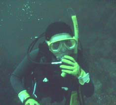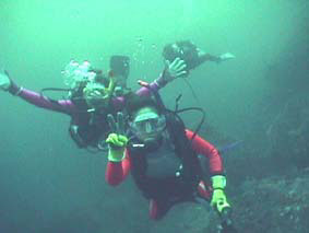 付き添いは佳代お姉さんと、村井君です。 西風を嫌って網代にやってきましたが、海面はべたなぎでまるで湖のようです。 とっても穏やかでした。海中は中層で濁りがあるものの深場は10〜12mの透明度で綺麗です。 またまた、いつもの『ヒラメ』があちらこちらにおりました。カゴカキダイの群れ、 ネンブツダイの群れ、メジナにイシダイが圧倒してくれました。 お昼は、いつものダイバーズランチでボリュウームいっぱい!味良し!満足です。 |