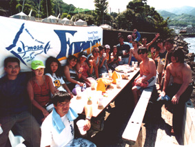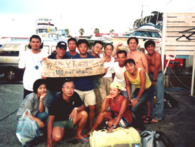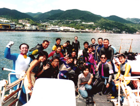 フォルモサも創業満6周年を迎え、網代のマリーナダイバーズクラブにて、 ボートダイビング&バーベキューパーティを総勢19名の参加者で執り行いました。 網代に到着後、水中宝探しのルールと実行方法を説明し、まずはキッテ根でダイビング! 参加者全員が、ヒントの書いてあるスレートへナビゲーションし、それぞれバディ単位で 水中に隠されている中華民国やシンガポール、マレーシアのコインを探しました。 簡単に見つけてしまうダイバーやなかなか見つけれなかったダイバーがおりましたが、 無事に全コインはめでたく参加者によって発見されました。 水中宝探しを行った本日のキッテ根は、水温26〜29度、透明度5〜10m と good! キッテ根にはいつもの、メジナ、イシダイ、ハタンポ、ネンブツダイ、ニザダイ、イサキの 群がどっさりです。あまりの綺麗さと群れの多さに宝探しに熱中できません。気が散る楽しい ダイビングです。 今回、100本目を迎えた田村さんへの寄せ書き横断幕に集まっての撮影会もありました。 田村さん!おめでとうございます。 ![]() また、根の周りはフォルモサチームで占領状態でした。他のダイバーの皆さん! (いませんでしたが)ごめんなさい!本日は大目に見て下さい。 マリーナダイバーズクラブに戻ってからは、ダイビング器材を洗浄し、次のイベント、 何と??フォルモサ6周年を記念して 『筆記試験?』です。 フォルモサとダイビングに関連した問題がクイズ形式で出題され、最高得点者には 東京タワー水族館の入場券と東京商工会議所蓼科フォーラムのお食事と宿泊券 (かなりお得な割引券です)が賞品として渡されました。 バーベキューパーティに入り、生ビールで乾杯! 上質の牛肉あり海鮮ありの美味しさ満点の中で、水中宝探しの結果発表です。 見事、探し当てた当選者の皆さん!おめでとうございます! 最後は、バディ単位で行ったジャンケントーナメントです。賞金1万9千円を手にした バディは?どちら? 今後も引き続きフォルモサのご愛好を皆様にお願いしまして、 本日の楽しく美味しいパーティを終了しました。 |