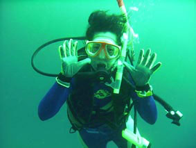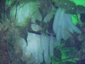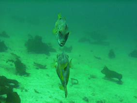 富戸での海洋実習は、横田さんの参加で秋冨インストラクターが担当、 そしてツアーの参加は、村井君、福田さん、茂木さんで松橋が担当です。 梅雨とは思えないとても良い天気で陸上では、ダイビング準備中汗だくでした。 風もほとんどありません。 1本目は、ヨコバマに入り、ほとんど波がありません。水面近くの浅場は水温22度で、 少し濁っていました。しかし水深15m位からは水温も下がり透明度もグーンと上がります。 アオリイカの魚礁床には、沢山のアオリイカの卵と ミギマキの幼魚とハオコゼが可愛くついていました。 深場の砂地では、沢山のハオコゼとコチ、ホウボウ、ヒラタエイ、カレイ、 ミノカサゴなどを見ることができました。 中層では、コアジの群が忙しそうに泳いでいました。 2本目は、脇浜でツアー組と海洋実習組が合流し、記念撮影ごエントリー、 いきなり、シマウシノシタが砂の中に隠れているのを発見、 上の砂をとってもびくともしません。 ベラギンポでしょうか?何度も砂に入って隠れては出てくる様子が面白くて しばらく見て楽しみました。伊勢エビの赤ちゃんを手に取り観察の後、どこかに 逃げていきました。 富戸は砂地に棲むサカナが多く観察でき楽しいところですね。 ダイビングを終えて、昼食はいつもの伊東の魚屋『ふじいち』で 美味しい焼き魚を食べて帰りました。 |