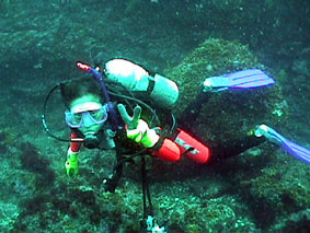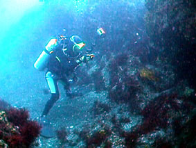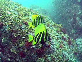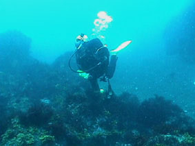 そして松橋の計4名の参加です。 東京〜大島間の東海汽船は、武内さんの用意した特等船室で早速、宴会です。 翌日のダイビングも考えず、よく飲みました。 10日、早朝パームビーチに到着、まずは8時まで仮眠です。 のんびり朝食をとった後、車で秋の浜へ! 秋の浜は、東風で少々波が高いもののエントリー・エキジットは問題なし。 水中は、透明度がやや落ちるものの水温20〜22で快適ダイビングです。 ウランちゃんお望みのクマノミとミツボシクロスズメダイの幼魚を見てご満悦の様子です。 大物は、残念ながら見れませんでしたが、深場ではキンギョハナダイの群れや 形のいいイサキの群れが良かったです。あちらこちらでスズメダイの愛の営みが 見れました。ムギワラエビ、オトヒメエビ、キタマクラの幼魚、 そしてイザリウオも見ることができました。 パームビーチで昼食後、野田浜で2本目、アーチ付近のイサキの群とアカハタ、 そして人なつっこいハマフエフキダイにかこまれ、楽しいダイビングです。 休憩後、ケイカイで3本目、風は再び東風で水面は穏やかでした。 ケイカイのダイナミックな地形をゆっくり回って楽しみました。 3本目を終えて、そのまま長浜公園の露天風呂に直行、海を眺めながらの気持ちいい ひとときです。近くにには、新しい温泉も出来ておりました。 美味しい夕食では、ナイトダイビングを控えてお酒は我慢! 日が落ちてまもなく、ケイカイに出かけました。日中同様、ダイバーがおりません。 街灯もなく、そして三日月で月明かりも少なく、とってもスリリングなナイトダイビングです。 夜光虫がとっても綺麗で、潮が岩にぶつかりキラキラと岩のシルエットを描きだしていました。 本当に幻想的です。ベニイザリウオを発見、失礼して手の上で遊ばしていただきました。 何よりも大小の伊勢エビの多さにビックリです。とっても楽しいナイトダイビングでした。 お風呂で塩を流してから、元町港近く、行きつけの居酒屋で、 タカベの塩焼き、ササリ貝のバター炒め、あした葉のゴマ和えをつまみに 地焼酎を2本いただきました。満足、満足の1日です。 翌朝、朝の散歩を終え朝食をとりました。その後、伊豆大島での最後のダイビング! パームビーチ目の前の野田浜です。前日同様、のんびりとダイビングを楽しみました。 他のグループが見ていた岩壁のタツノオトシゴを一緒に見させていただきました。 最後のダイビングを終えて、再び東海汽船の特等船室での宴会です。 ダイビングと宴会に明け暮れる今回のツアーでした。 |